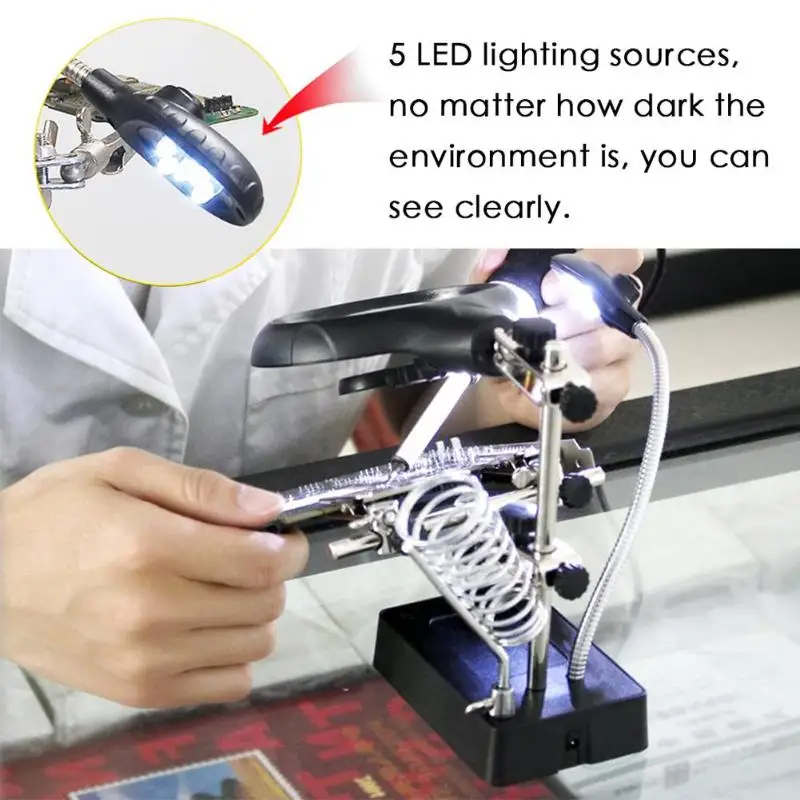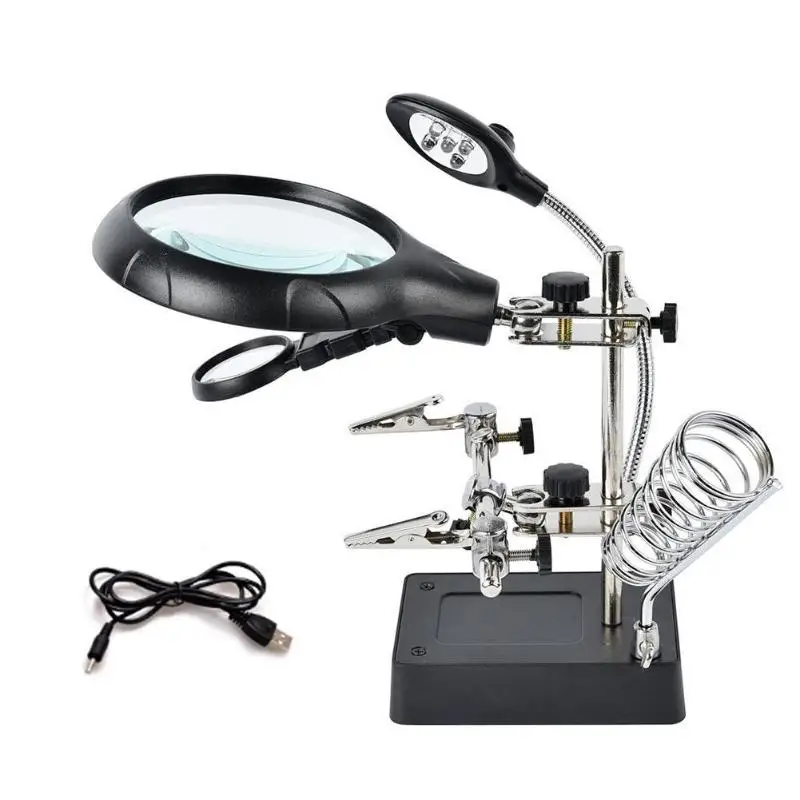 360 Rotation LED Magnifying Glass Soldering Iron Stand Len Magnifier Tool Adjustable Desk Desktop T