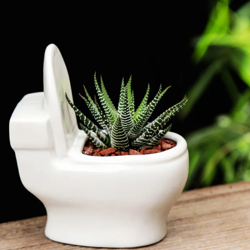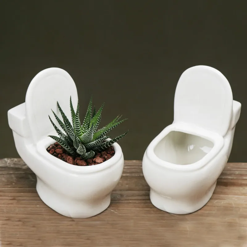 Creative simple cute toilet shape fleshy plant small flower pot ceramic desktop fleshy flower pot h