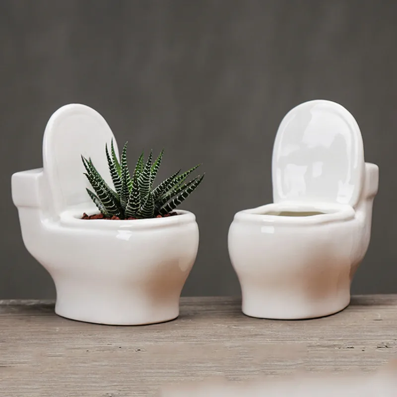 BEST QUALITY Creative simple cute toilet shape fleshy plant small flower pot ceramic desktop fleshy flower pot h