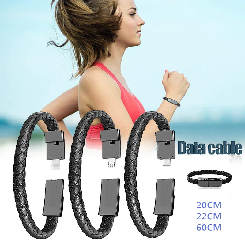 Leather Bracelet Charger Cable Type-C USB Bracelet Charger Data Charging Cable Sync Cord for IPhone