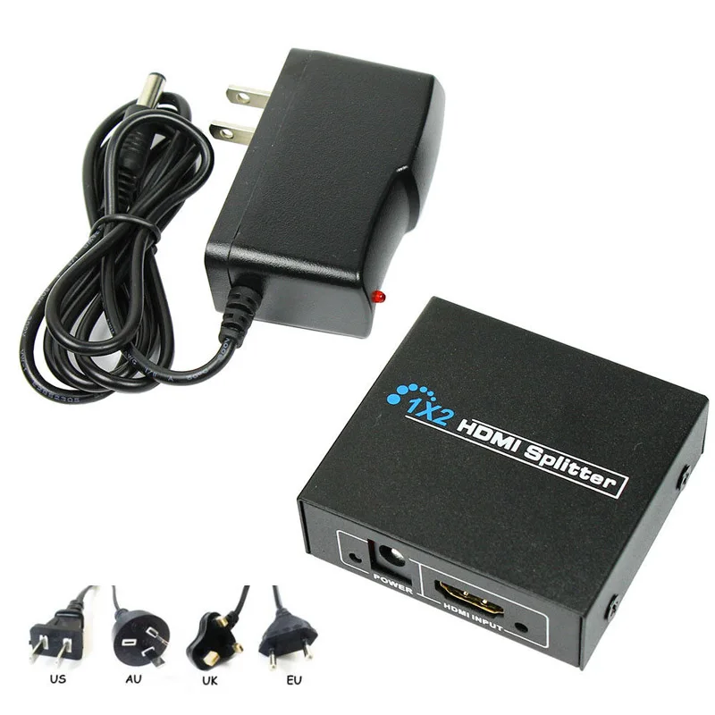 New 1x2 2 Port 1 Input 2 Output HDMI Splitter Metal Box Audio Video v1.4b Amplified Full 1080p Moni