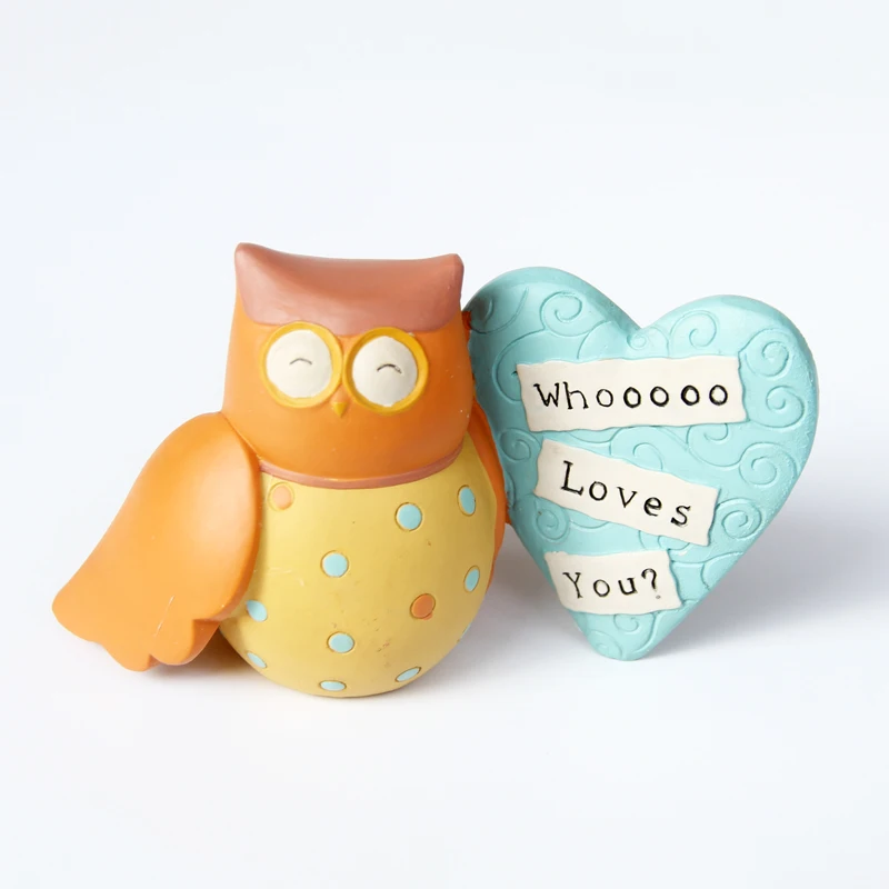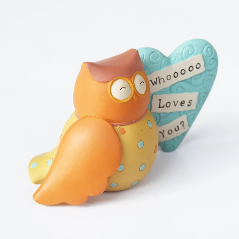 Love Heart Figurines Owl Resin Crafts Fairy Home Garden Landscape DIY Miniacture Decor Desktop Orna