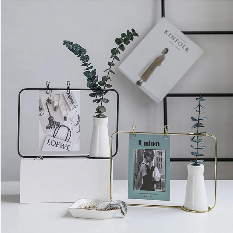 HOT Sale Ceramic Flower Vase Iron Art Message Holders Photo Frame Postcards Clip Hydroponics Vases Home Desk