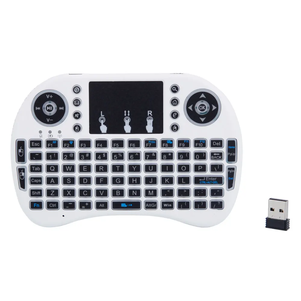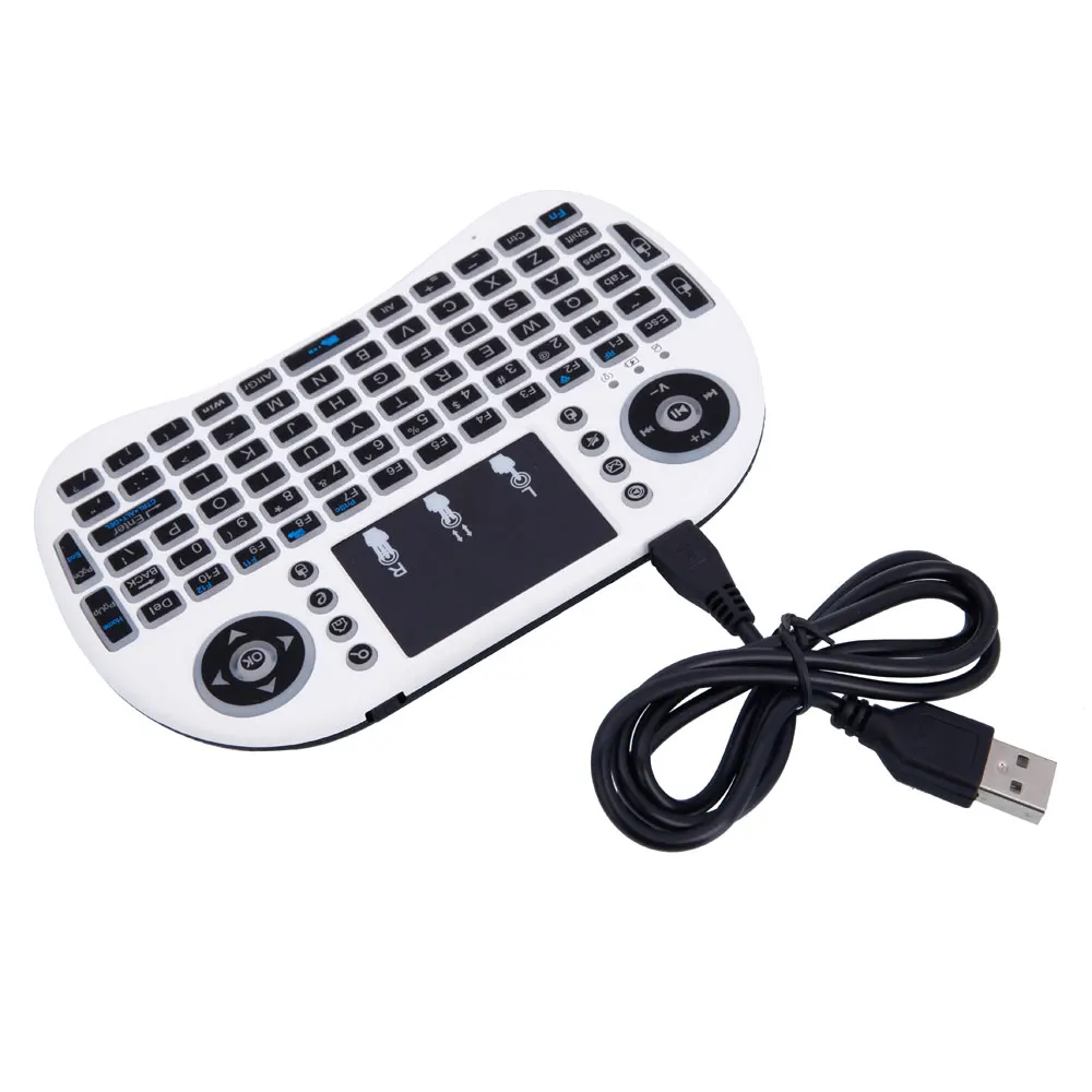 ORIGINAL 3-Color LED Backlight Mini Wireless I8 Keyboard 2.4GHz Receiver Built With Touchpad USB Cable White