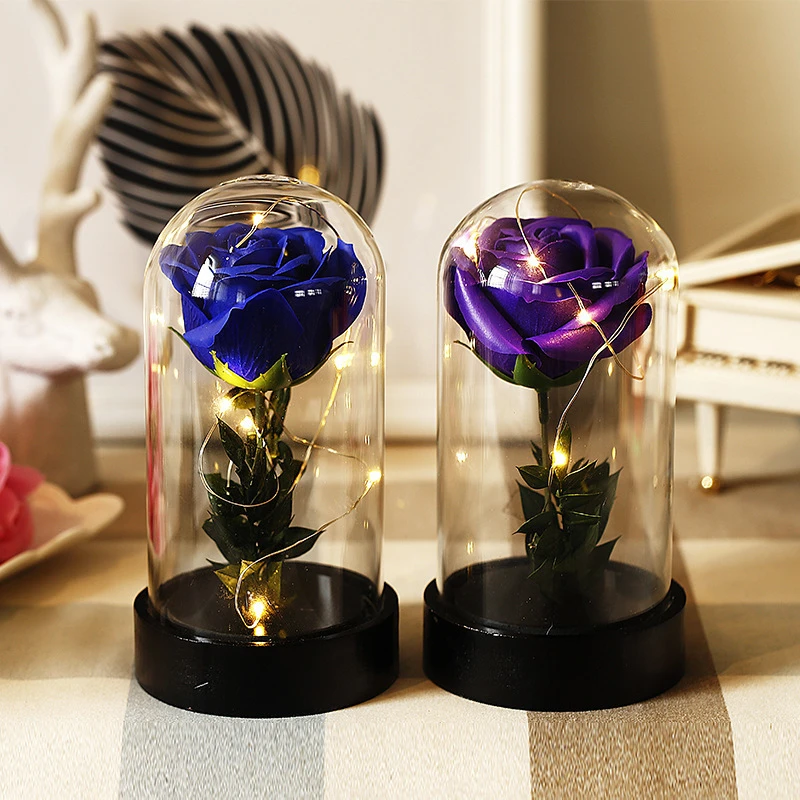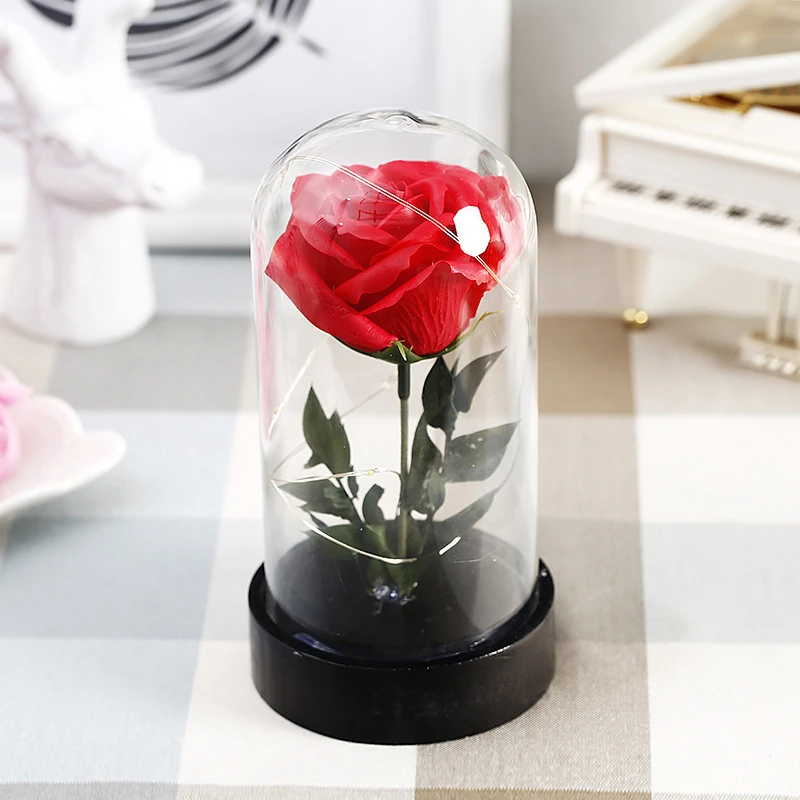 HIGH QUALITY Rose LED Light In Glass Star Lamp Decoration Crafts Creative Red Imitation Rose Christmas Valentine
