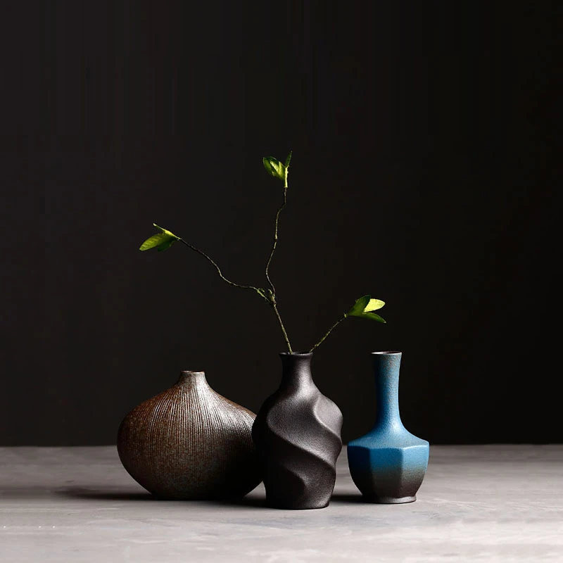 Chinese Zen ceramic vase Coarse pottery Mini vases Dried flowers DIY containers Desktop decor craft