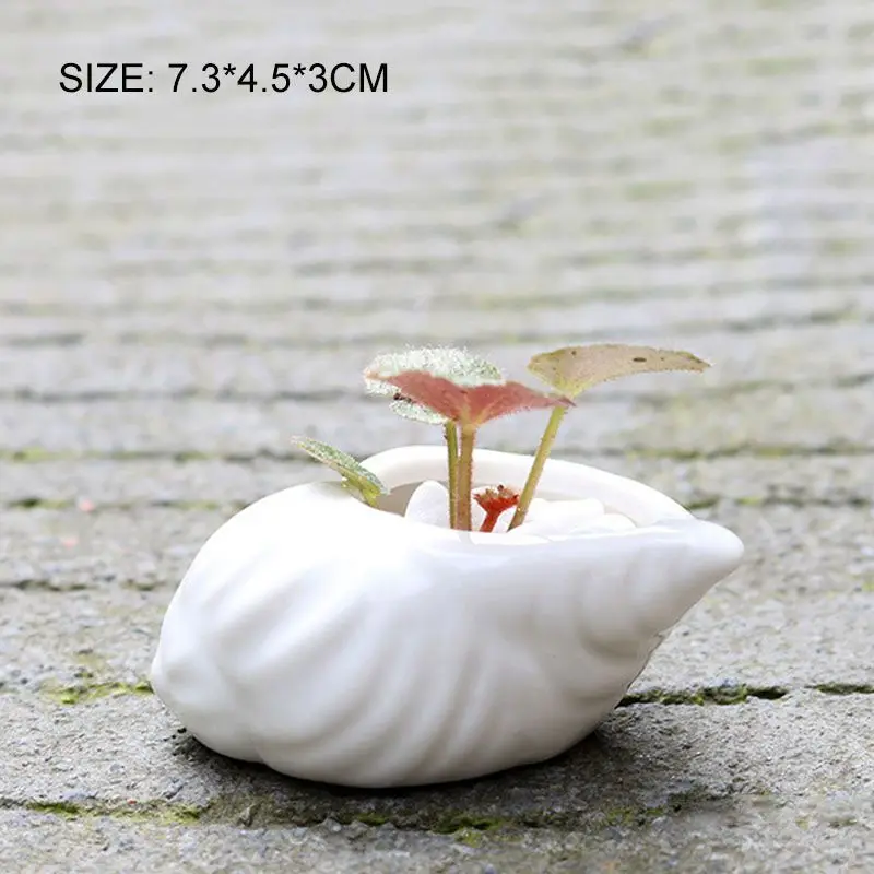 BEST 6pcs/set Mini White Small Flowerpot shell Shape Ceramic Succulent Plant Pot Holder Fairy Garden Cac