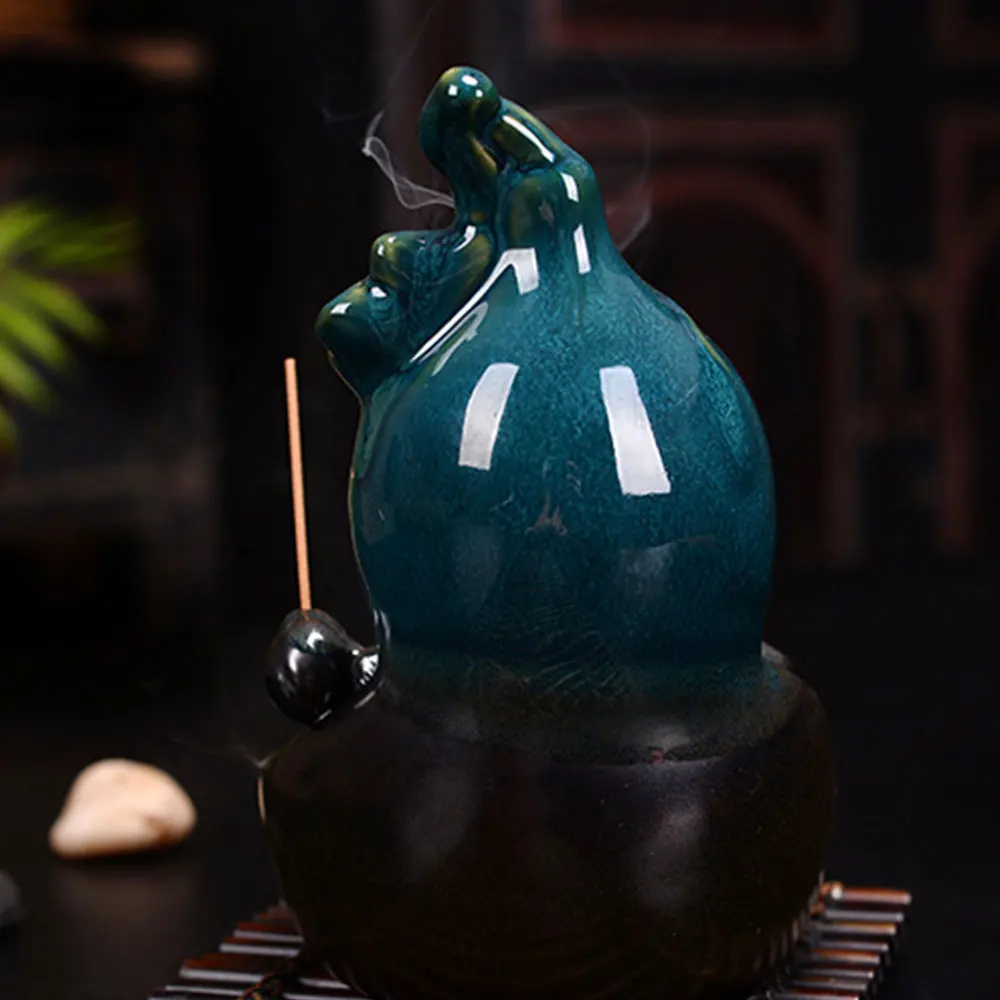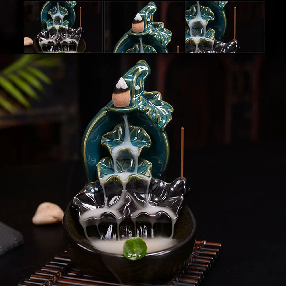 Ceramic Backflow Incense Burner Lotus Shape Waterfall Eco-friendly Handmake Incense Holder for Home