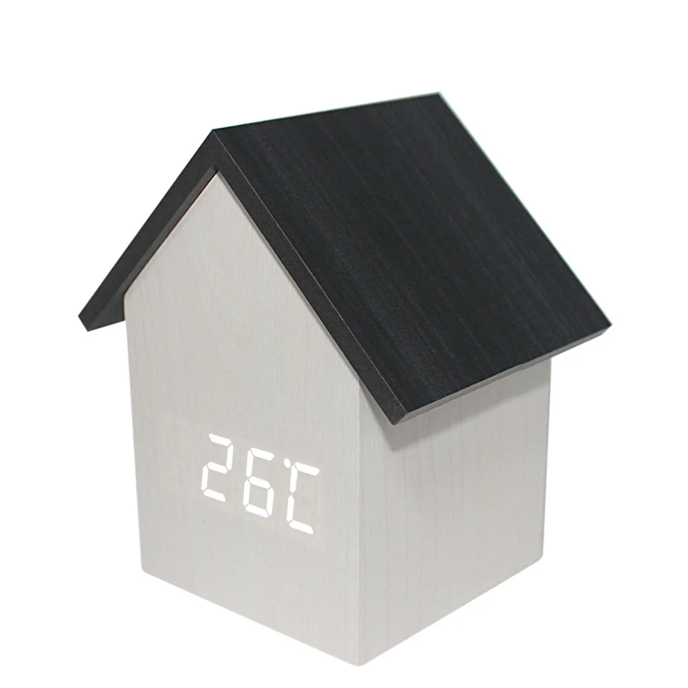 Time Alarm Clock Digital Display Home Office Led Children Gift Voice Control House Shape Desktop El
